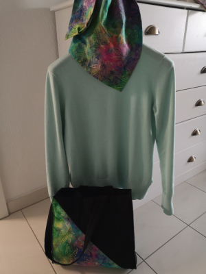 Vorschlag für eine Batik Handtasche und passendem Batiktuch